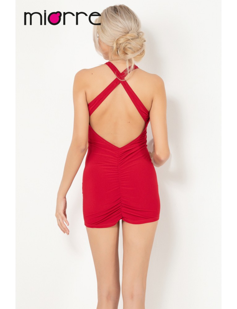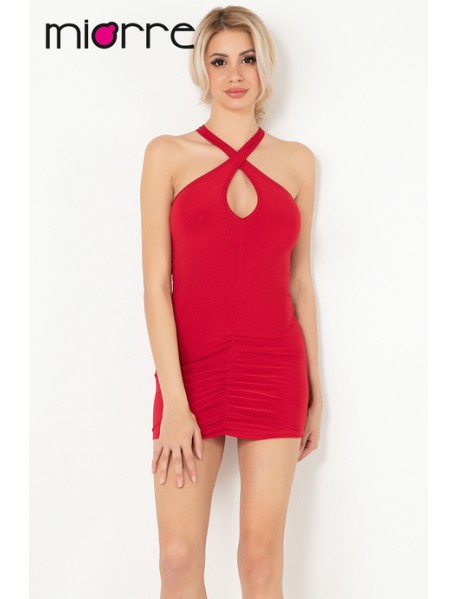 Miorre Cross Back Detailed Mini Red Dress 012-000088